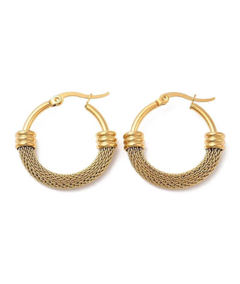 Orecchini cerchi ovali con maglia a rete in acciaio inox oro 18k