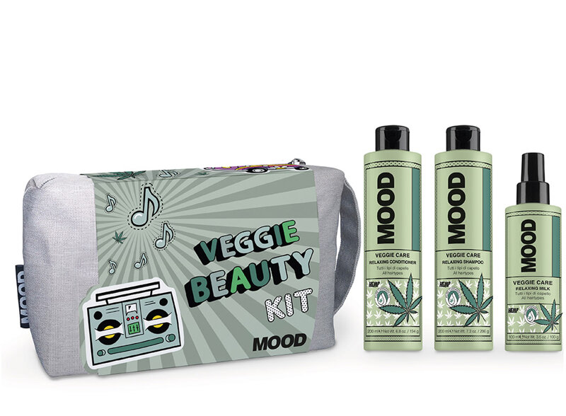 Veggie Beauty Kit contiene i prodotti appartenenti alla linea professionale rilassante alla canapa Mood Veggie, ideale per tutti i tipi di capello. Veggie Beauty Kit è perfetto da utilizzare a casa, in viaggio o in palestra.