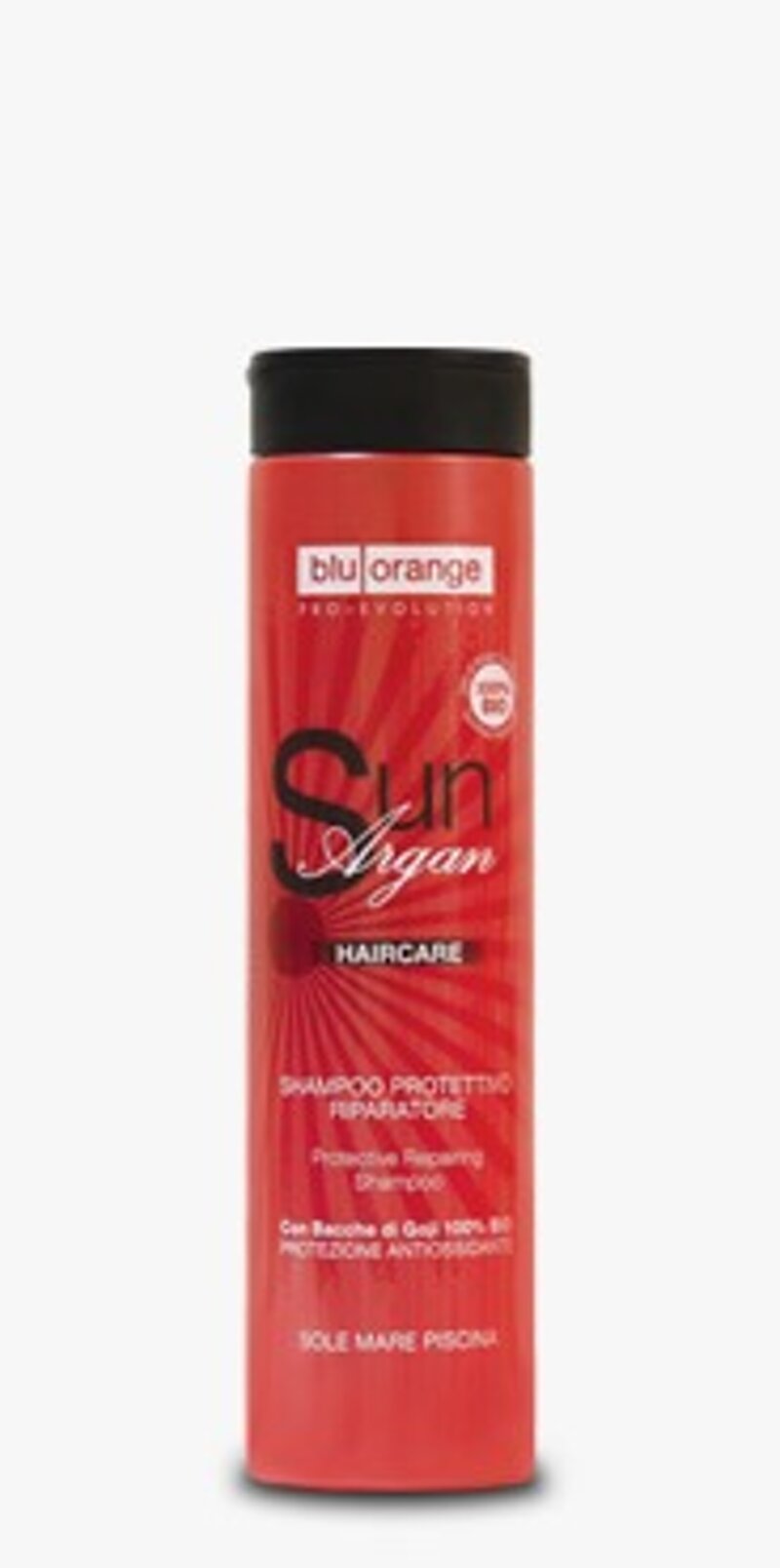 Lo shampoo Sun Argan Haircare deterge delicatamente il cuoio capelluto e la chioma, eliminando i residui di sabbia, salsedine e cloro. Grazie alla formula delicata, senza SLES/SLS, con Olio di Argan e Bacche di Goji 100% biologici certificati idrata intensamente, apportando sostanze nutritive e antiossidanti, rivitalizzando e fortificando i capelli. Aiuta a contrastare la fotodegradazione e la secchezza derivanti dall’esposizione prolungata al sole. I capelli appaiono in salute, luminosi e morbidi.