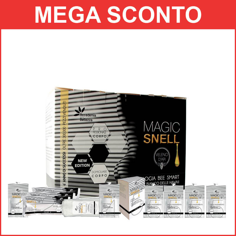 Inizia il tuo viaggio verso un corpo nuovo applicando questo straordinario gel, che grazie all'azione del preziosissimo veleno d'api e del purissimo Miele bianco delle Hawaii, prepara nel modo migliore la pelle all'applicazione delle bende "Fase 2", mentre avvia l'azione riducente e rimodellante del kit MAGIC SNELL.